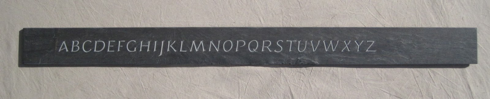 Wood stove is cooking away, the wind is whipping at the sides of the studio. Preparing for next weekend's stone carving workshop - I will be guiding the class through and introduction to carving letters into slate - apparently Vermont slate was formed 450 million years ago! Who can imaging anything that is "between" 400 and 750 million years old!